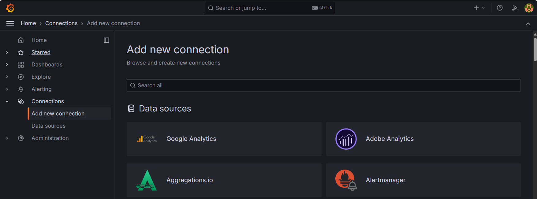 On the navigation menu, click Connections > Add new connection.