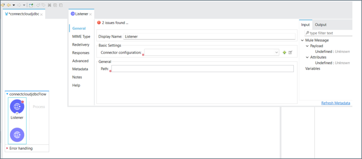 Click the + sign to the right of Connector configuration. The HTTP Listener config dialog appears.